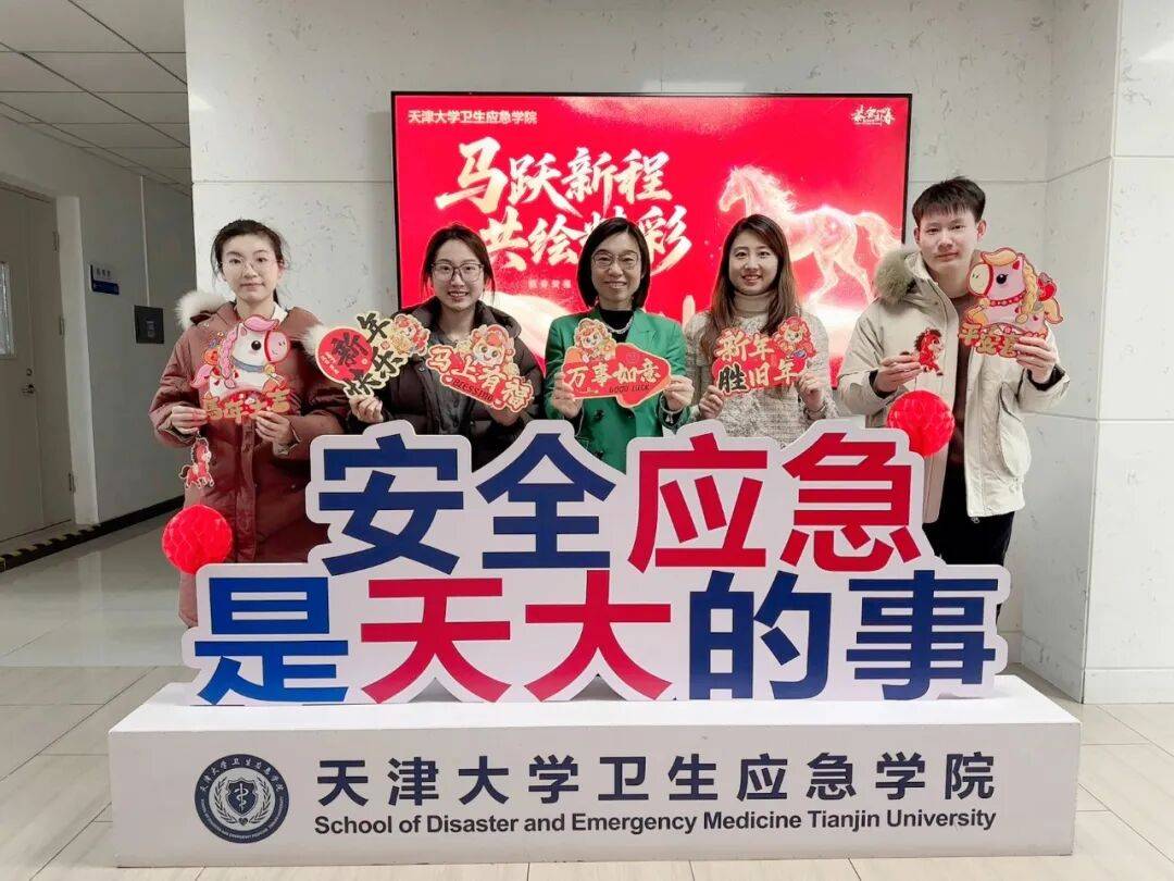 以色彩绘就胡想,正在押梦的赛道上蹄疾步稳;万事如意!旗开得胜!锻制应急之盾,赓续红色血脉,守济世初心,左起:张雨嘉(思政人才员)、孙德智(团委副、学工办副从任)、冮皓(团委、学工办从任)、冯天强(党委副)、葛云丽(团委副、学工办副从任)、魏燕